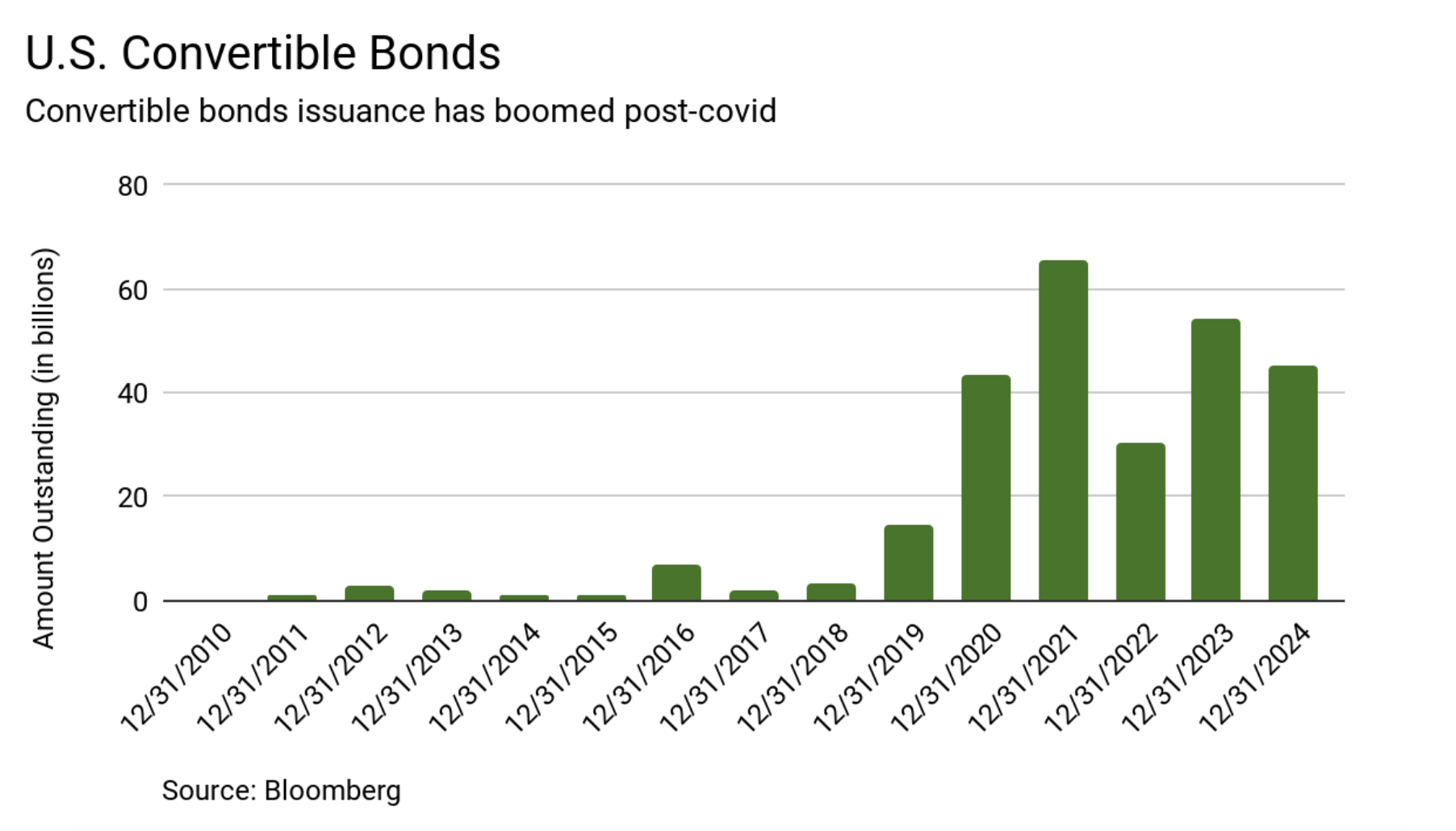 JetBlue also planned to issue two forms of debt: secured debt and convertible debt. As mentioned, secured debt is backed by an asset, much like mortgages are backed by homes. Convertible debt has a unique characteristic in that it can be converted to a specified amount of common stock under certain predetermined terms called "conversion privileges." Convertible debt tends to have lower interest rate payments than traditional secured debt, which is beneficial for the issuer given it carries this option. The promise of lower interest payments has actually sent convertible bond issuance through the roof (see chart), in light of the current higher interest rate environment.