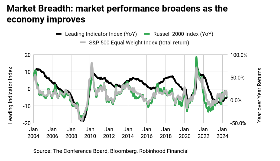 The Consumer price index (CPI) was cooler, leading to increased probabilities of a Fed rate cut, while retail sales strengthened and jobs, though cooling, remained solid. These factors typically favor economically sensitive stocks that have largely underperformed for more than a year (check out my recent posts Wen Small Caps? and REITs: Too soon?).