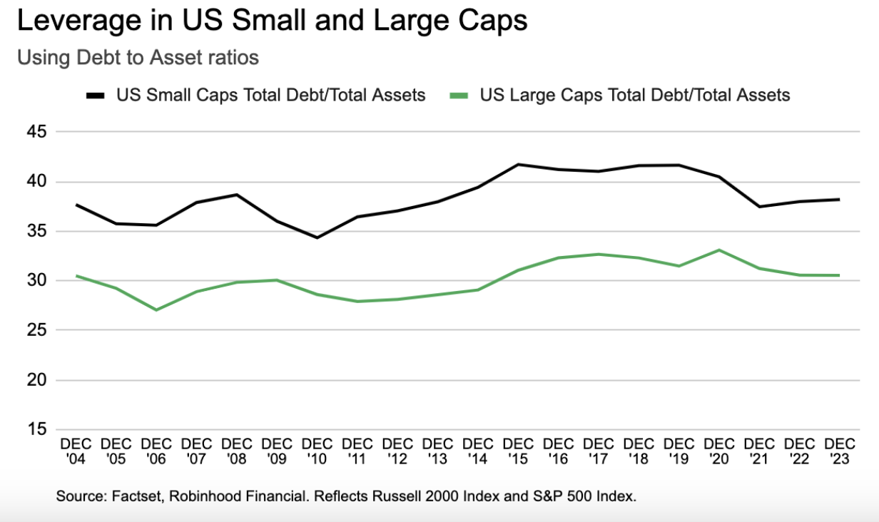 US Small Caps have 20-30% higher debt levels, on average, than US Large Caps.