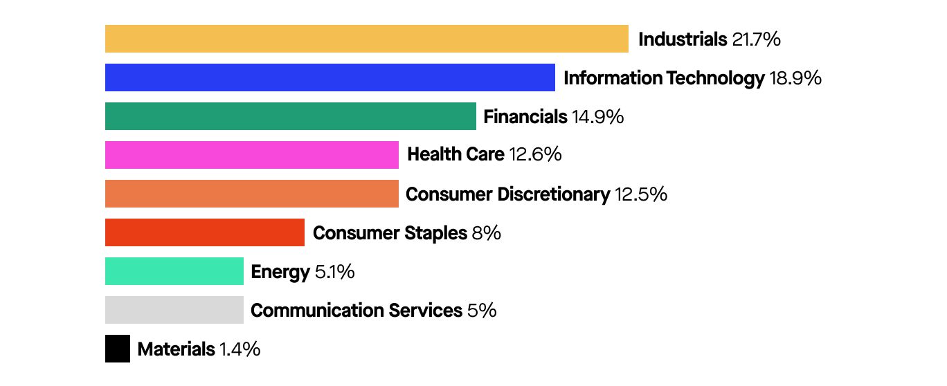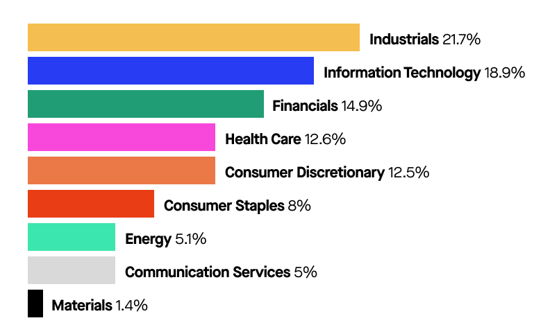 Based on GICS sectors. The weightings for each sector of the index are rounded to the nearest tenth of a percent; therefore, the aggregate weights for the index may not equal 100%.