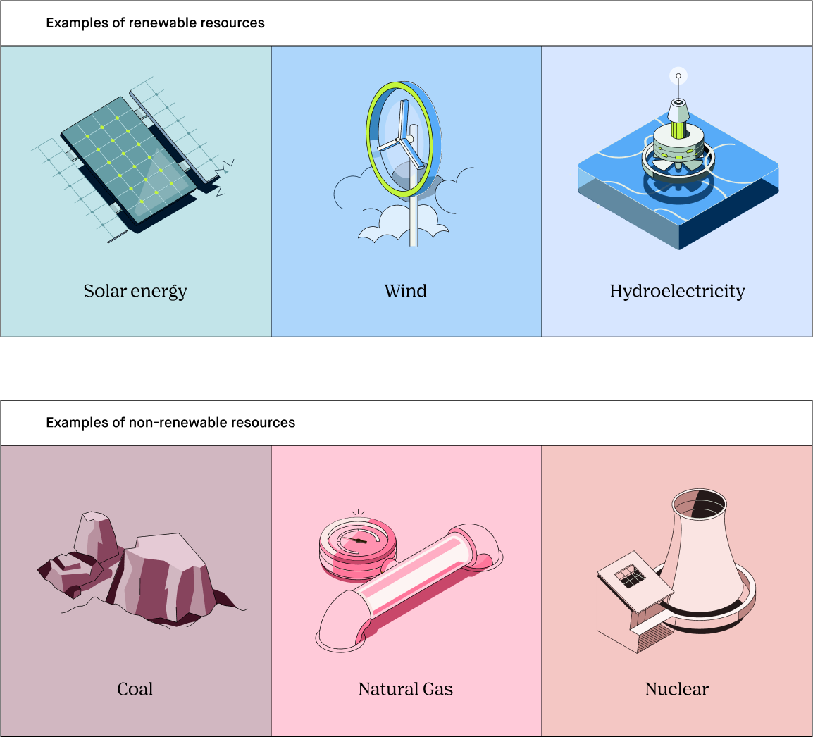 Nonrenewable resources are natural resources that have a fixed amount available. They generally either can’t be replenished or take many years to do so — That means we risk using them up.