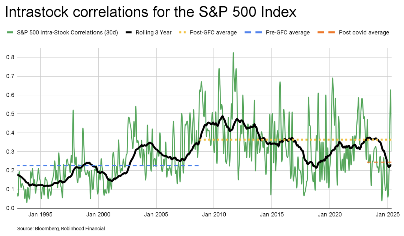 Correlations between stocks remain low—meaning companies aren’t moving in lockstep. When they’re low, there’s more potential to generate returns investing in individual stocks vs. just buying a broad-based index. In short: it’s still a market of stocks.